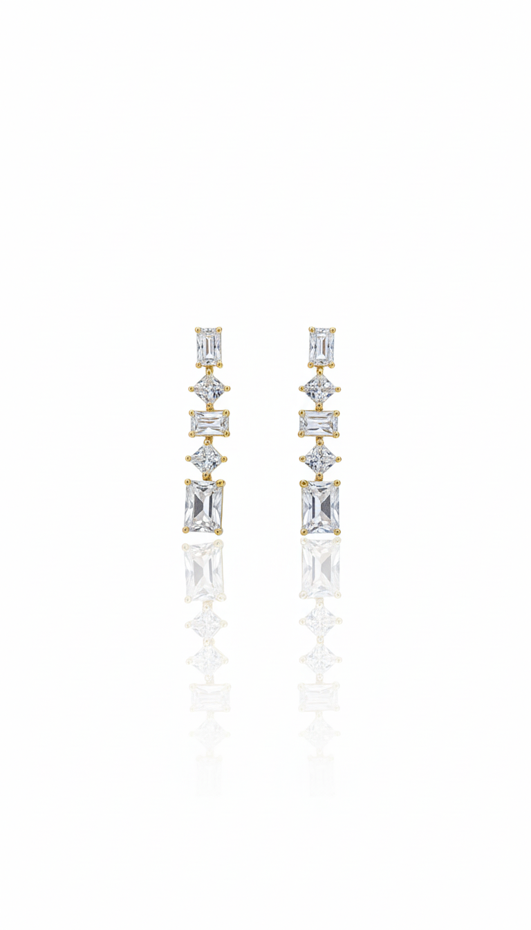 Farklı formlardaki yüksek kaliteli kristal taşların alt alta dizilimi ile oluşan Bu tasarım hem günlük şıklığınızı tamamlamak Hem de özel davetlerde göz kamaştırmak için ideal bir parça.