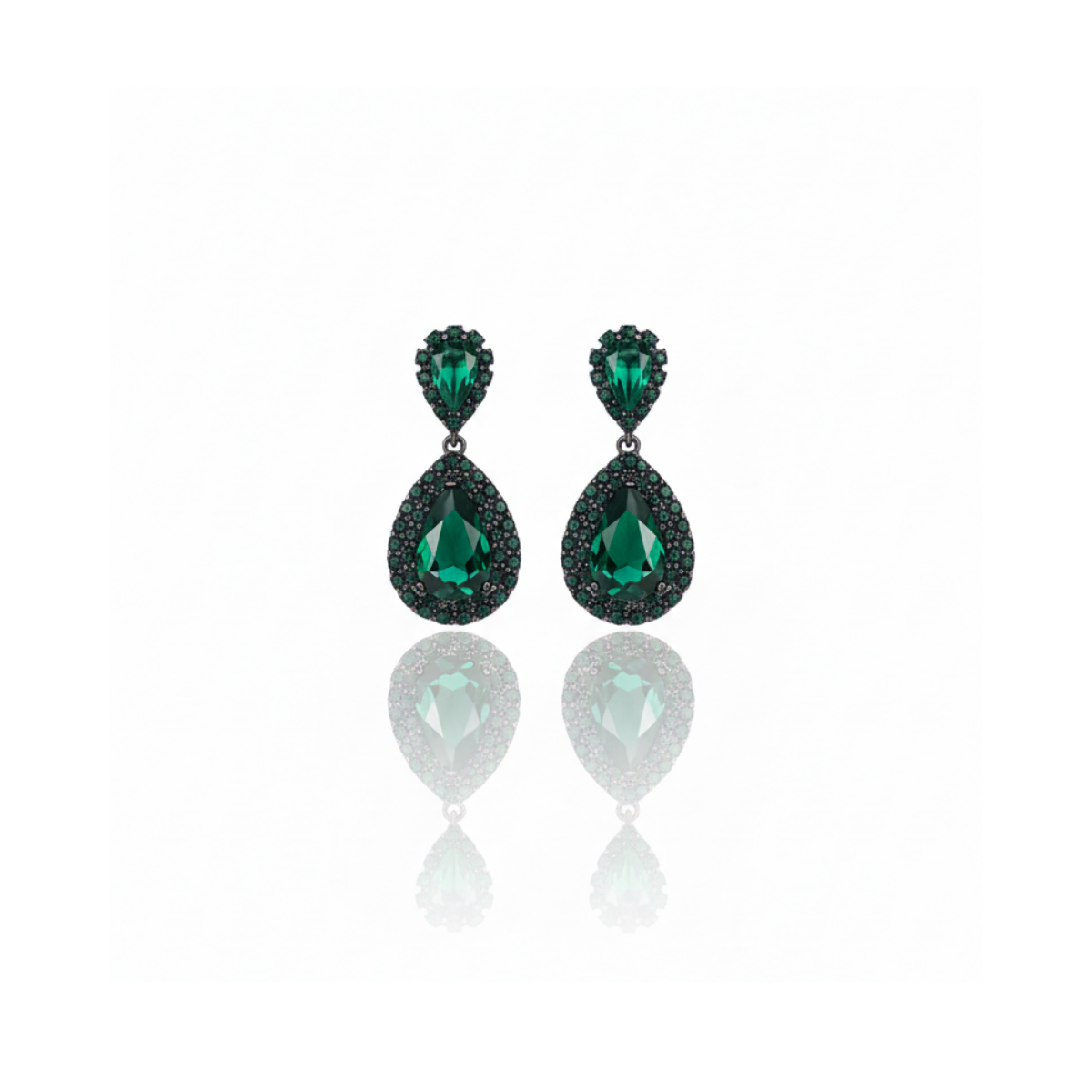 Derin zümrüt yeşili tonlarındaki kristal taşlar özel antrasit metal çerçeve ile birleşerek zamansız bir şıklık sunar..