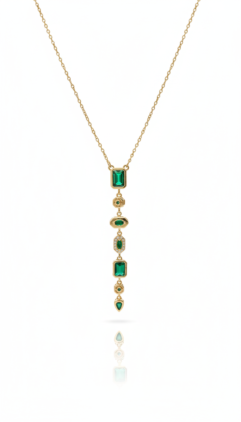 Zümrüt taşının farklı kesimlerini altın renginin sıcaklığı ile birleştirdik hem özel davetlerde şıklığınızı taçlandırmak hem de günlük kombinlerinize muhteşem bir dokunuş katmak için tasarlandı.