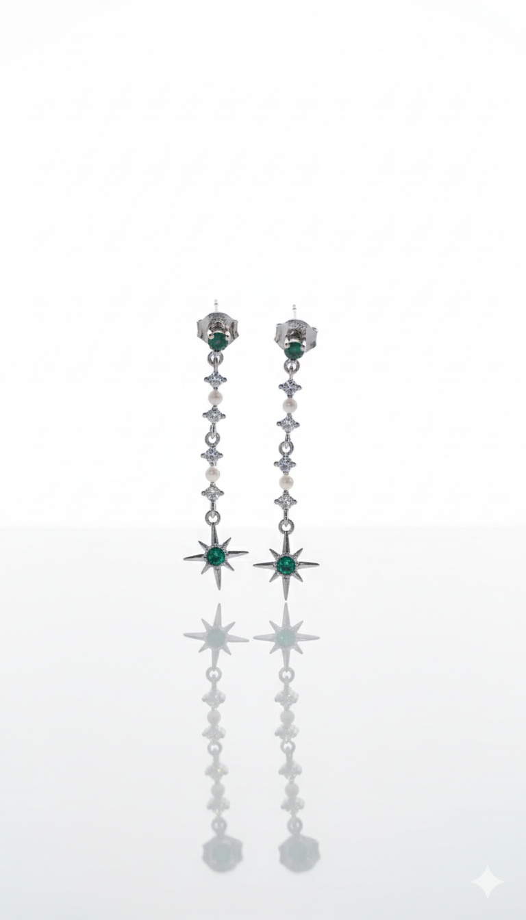 Zümrüt yıldızlı sallantılı küpe